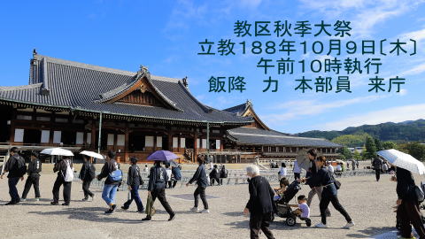 教区秋季大祭 立教188年10月9日〔木〕 午前10時執行 飯降 力 本部員 来庁