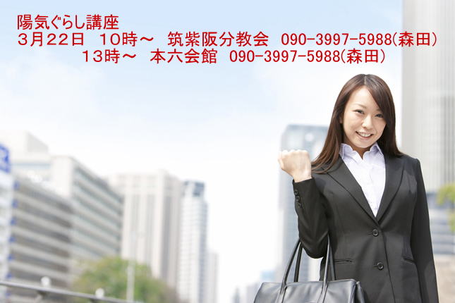3月22日 10時〜 筑紫阪分教会 090-3997-5988(森田)